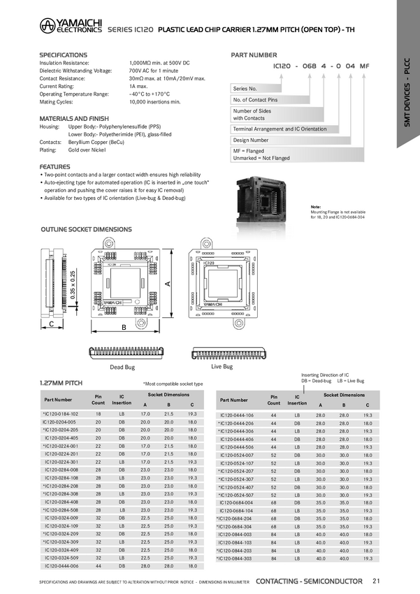 Yamaichi IC120-0684-304 IC120-0684-304 Podstawka PLCC Wymiary siatki: 1.27 mm Ilość styków: 68 1 szt.