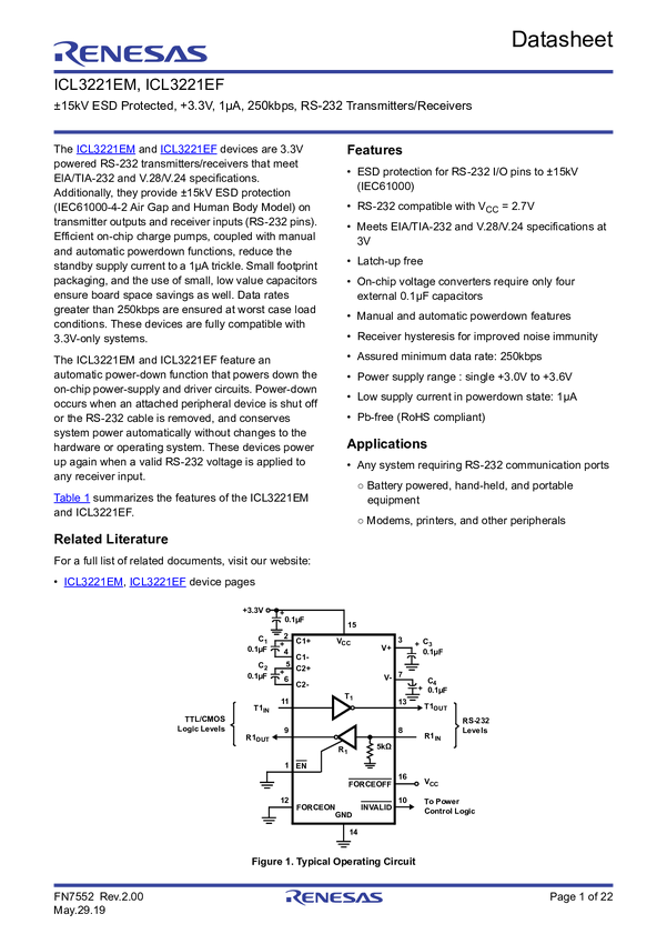 ±15kV ESD Protected, +3V, 1µA, 250kbps, RS-232 Transmitters/Receivers