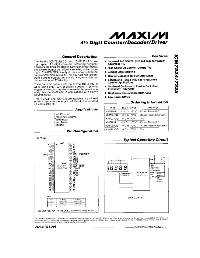 4 1/2 Digit, LCD, High-Speed Counter Decoder Driver