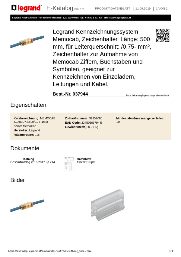 Uchwyt identyfikatora Legrand Legrand 037931 037931, 1000 szt.