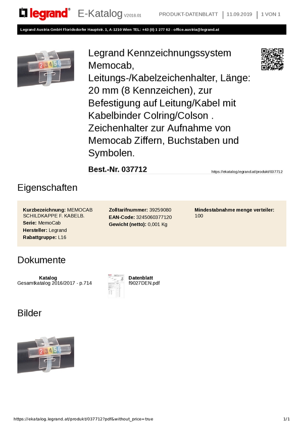 Uchwyt identyfikatora Legrand Legrand 037920 037920, 1000 szt.