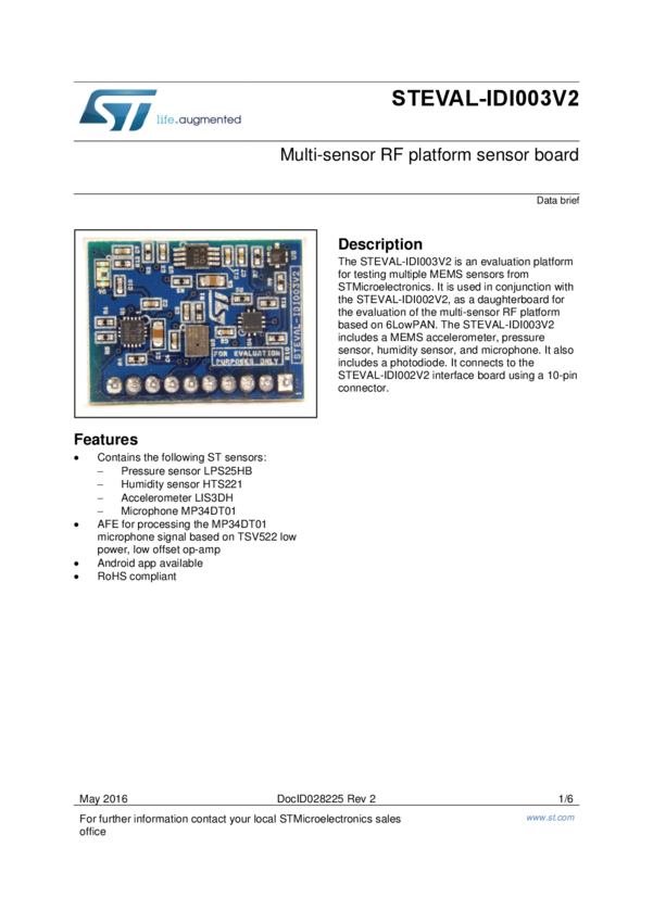 Multi-sensor RF platform - 6LoWPAN and NFC interface Board