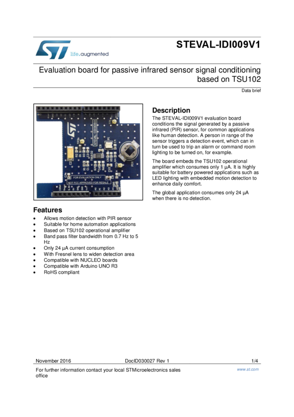 Evaluation board for passive infrared sensor signal conditioning based on TSU102