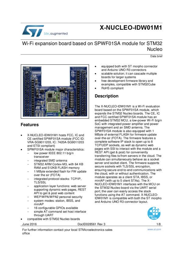 Wi-Fi expansion board based on SPWF04SA module for STM32 Nucleo