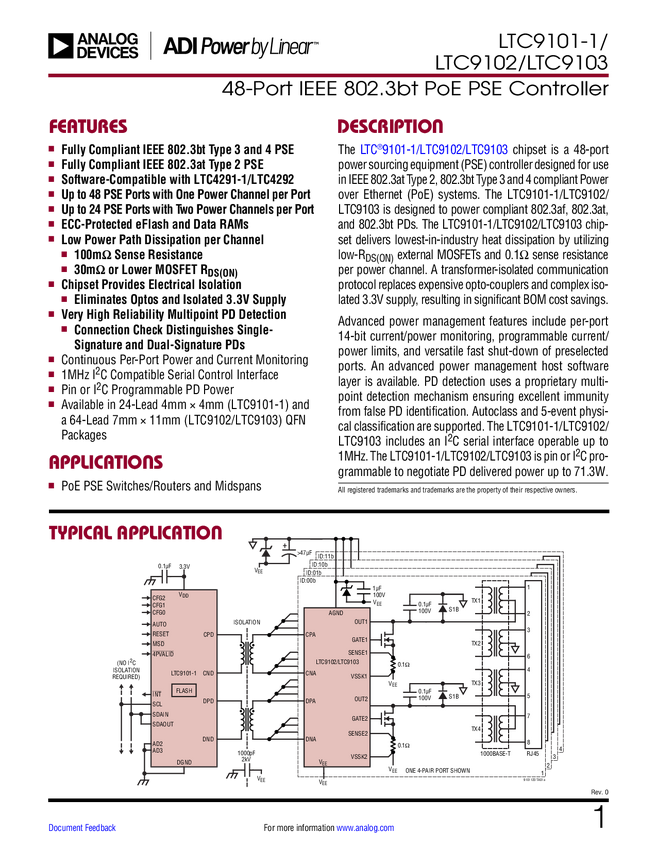 48-Port IEEE802.3bt (PoE 2) PSE Digital Controller