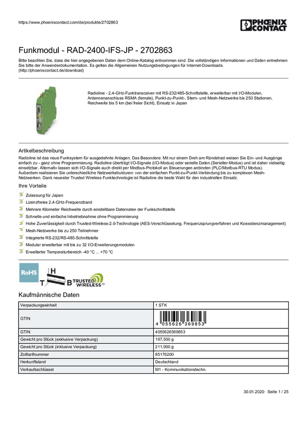 Phoenix Contact 2702863 RAD-2400-IFS-JP Moduł zdalny PLC