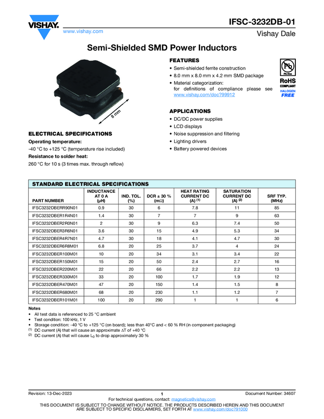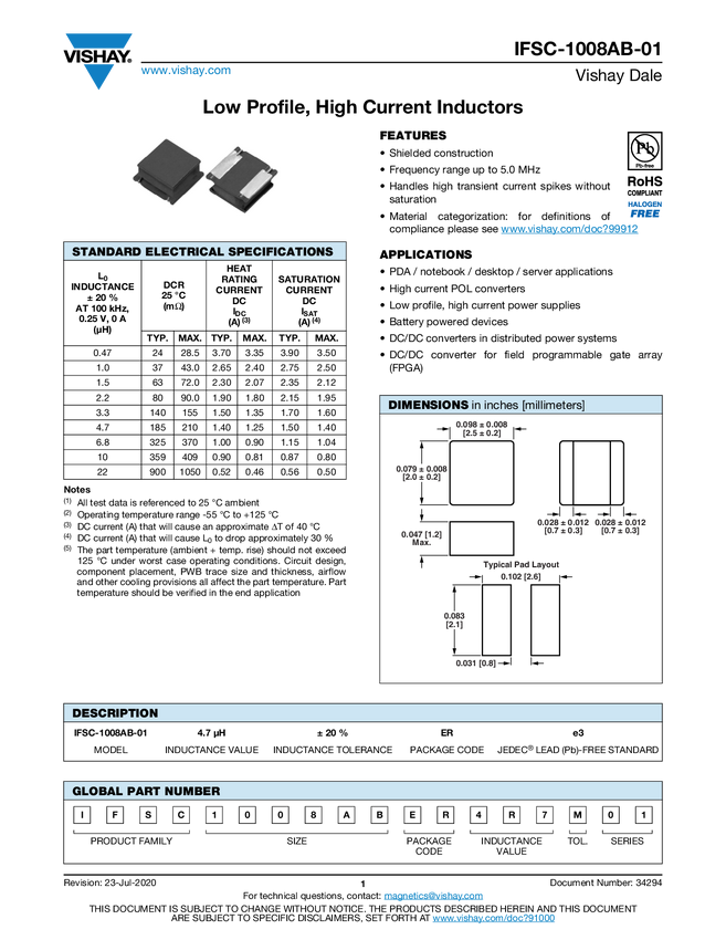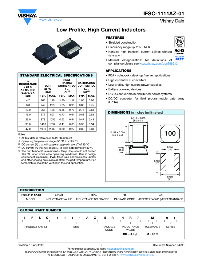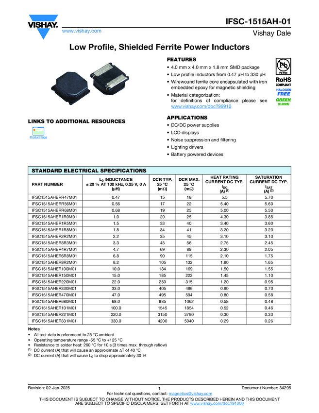 Low Profile, Shielded Ferrite Power Inductors