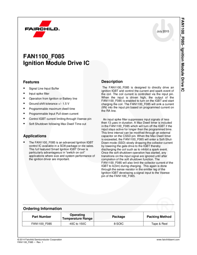 EcoSPARK®2 330mJ, 250V, N-Channel Ignition IGBT