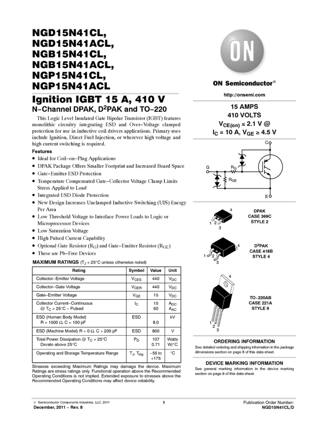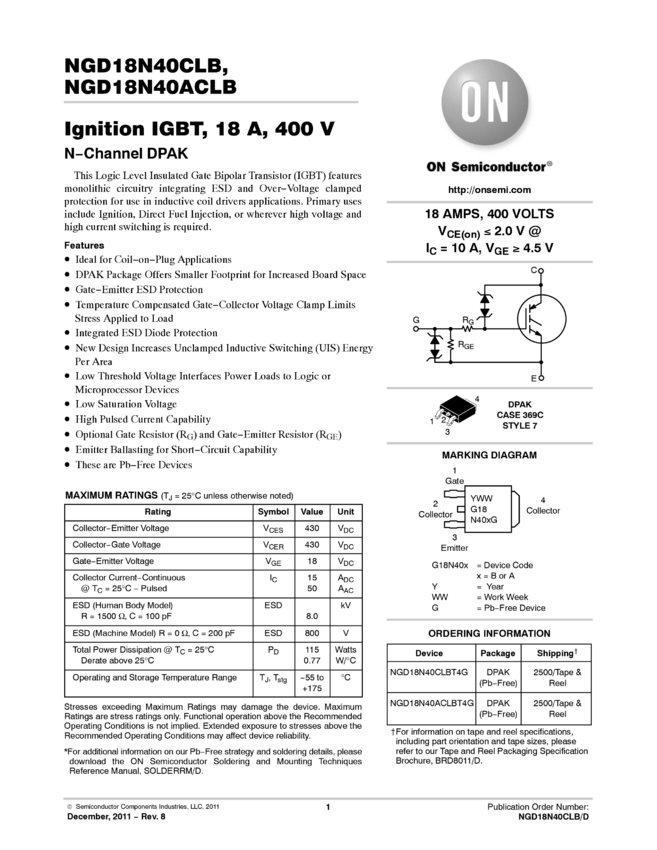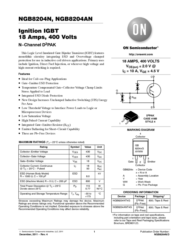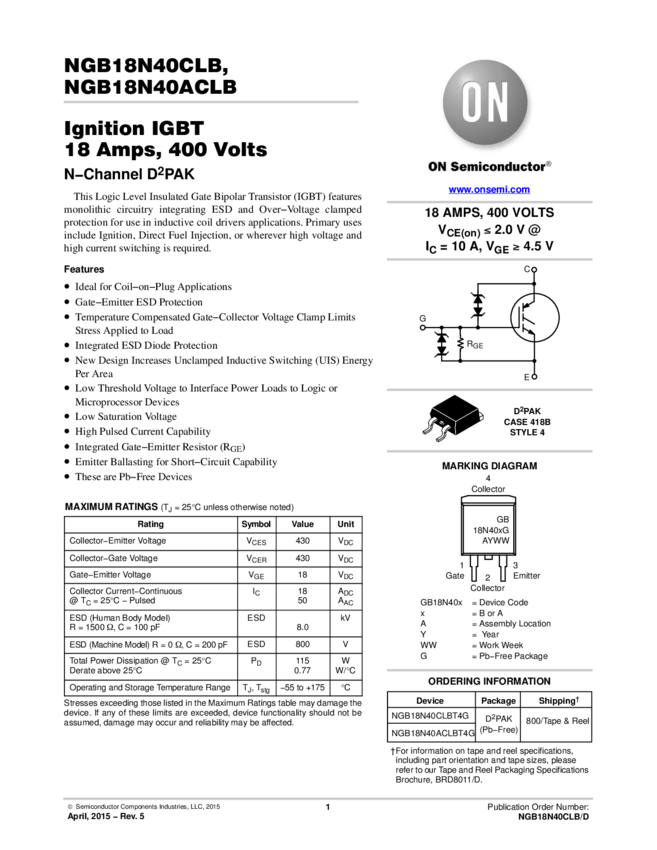 Ignition IGBT, N-Channel, 18 A, 400 V