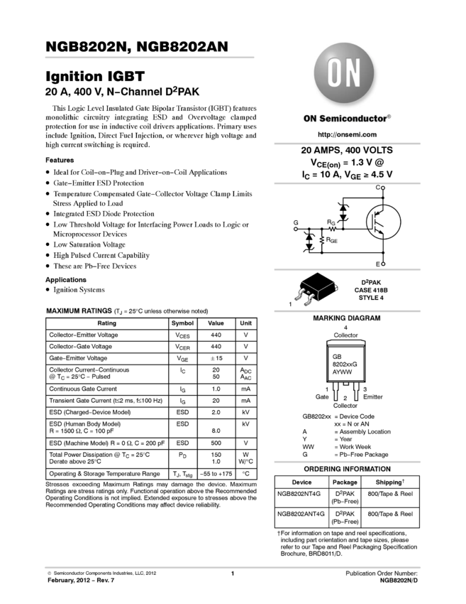 Ignition IGBT, N-Channel, 20 A, 400 V