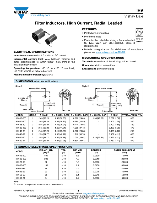 Ultra Low DCR Inductors, High Current, Vertical Mount Series