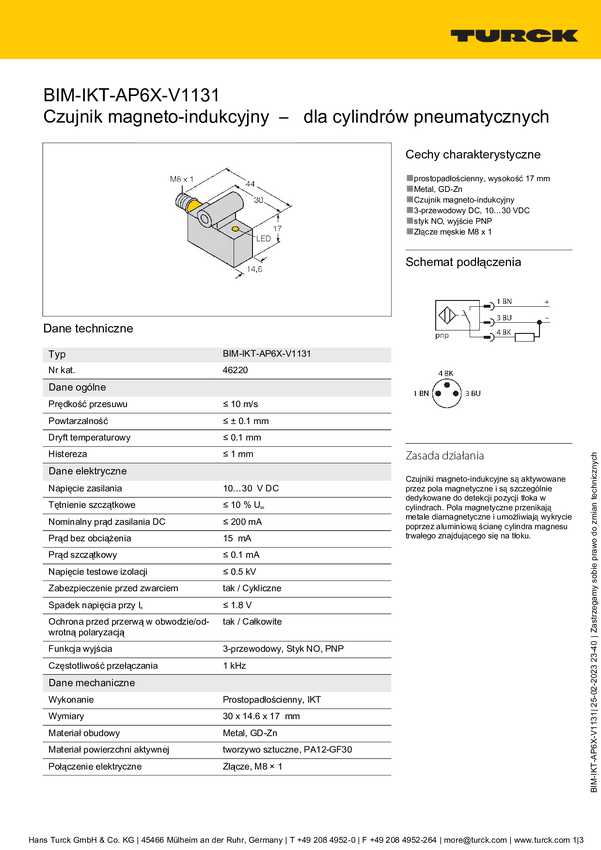Turck Czujnik pola magnetycznego PNP BIM-IKT-AP6X-V1131