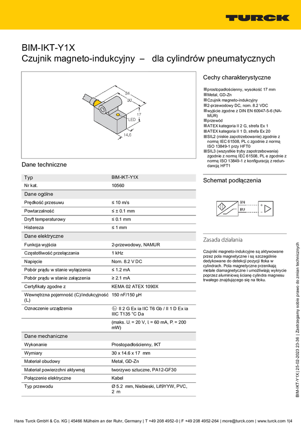 Turck Czujnik pola magnetycznego NAMUR BIM-IKT-Y1X-H1141