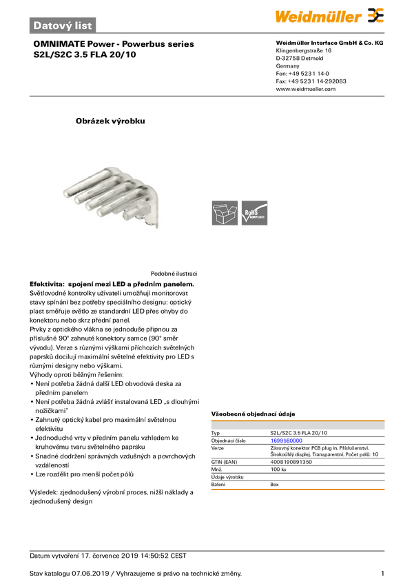 Wskaźnik iluminacyjny S2L 3.5 FLA 20/10 1699580000 Weidmüller Zawartość: 100 szt.