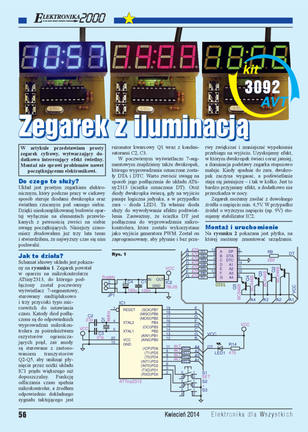 AVT3092 B Zegarek z iluminacją (czerwone LED) - zestaw do samodzielnego montażu