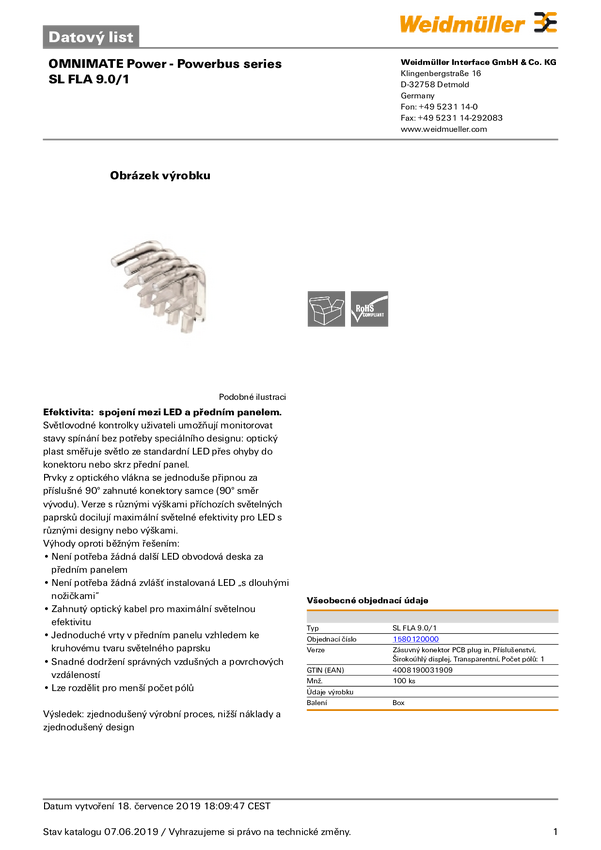 Wskaźnik iluminacyjny SL FLA 9.0/1 1580120000 Weidmüller Zawartość: 100 szt.
