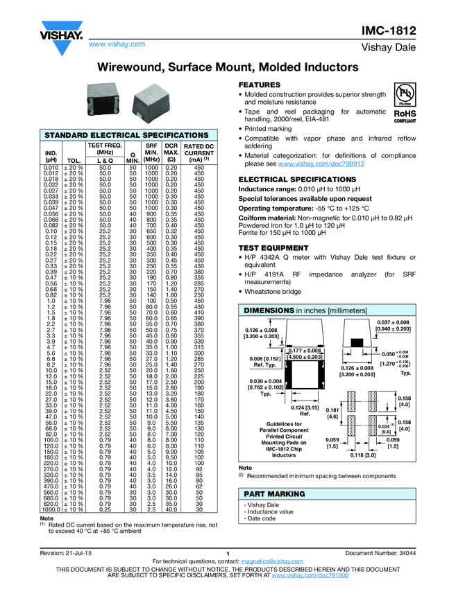 Ind Chip Molded Wirewound 100nH 20% 25.2MHz 30Q-Factor 450mA 1812 T/R