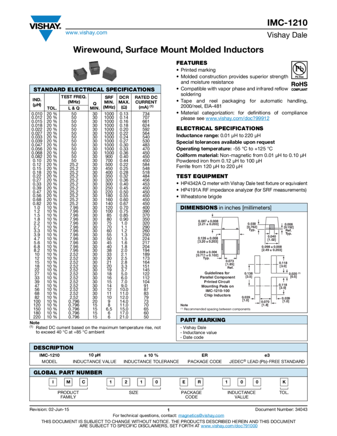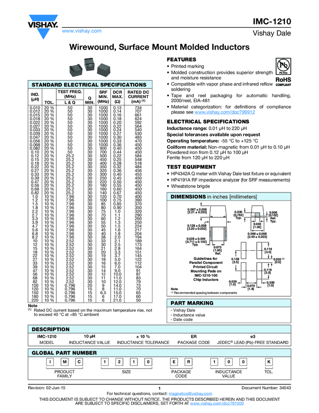 Ind Chip Molded Wirewound 10uH 10% 2.52MHz 30Q-Factor Powdered Iron 189mA 1210 T/R