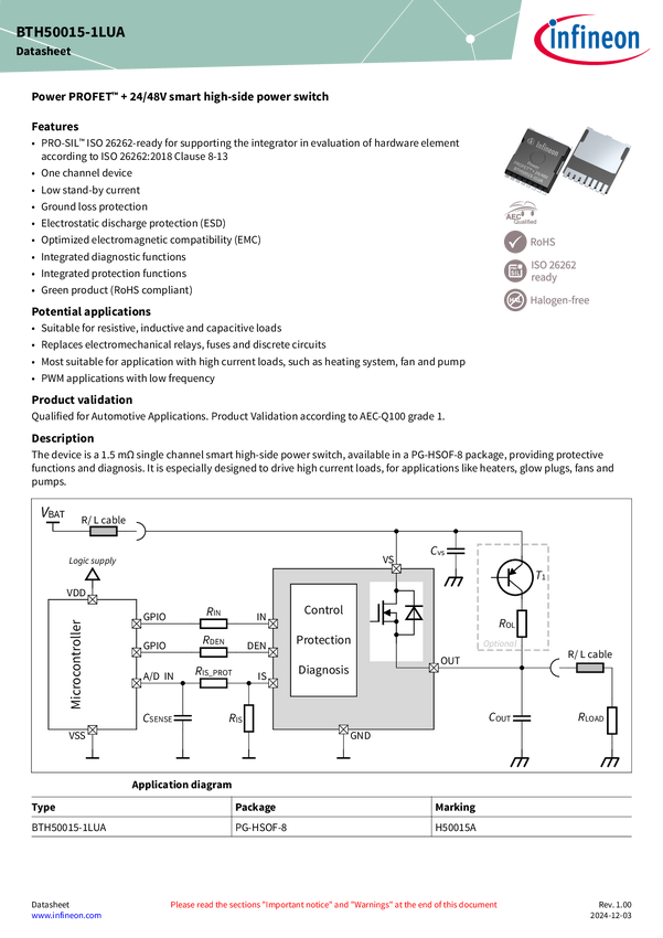 RDS (on) @ Tj = 25°C: 1.5 mΩ | Nominal Load Current per channel: 35 A | IL (Short Circuit Current): 90 A | ISO 26262-ready The CYAT81658-100AS48 belongs to the Multitouch Gen6L family, delivering an impeccable user experience for infotainment systems with small and medium touchscreens, and providing faster refresh rates, water rejection, wet finger tracking, and support for low power CapSense™ wake-up buttons.