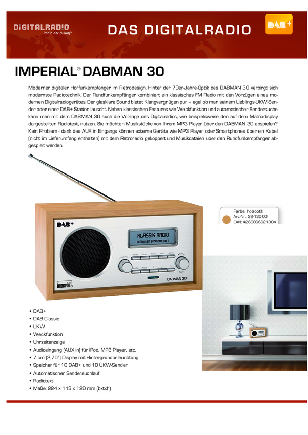 Radio Imperial DABMAN 30 DAB+, fale metrowe (VHF) beżowy