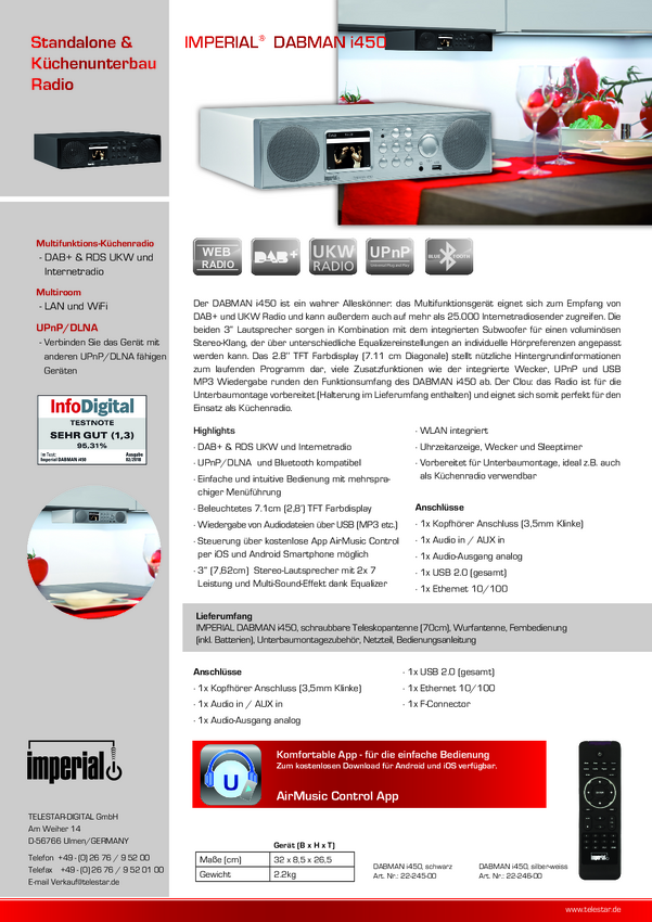 Radio internetowe kuchenne Imperial DABMAN i450 DAB+, fale metrowe (VHF), Internet srebrny