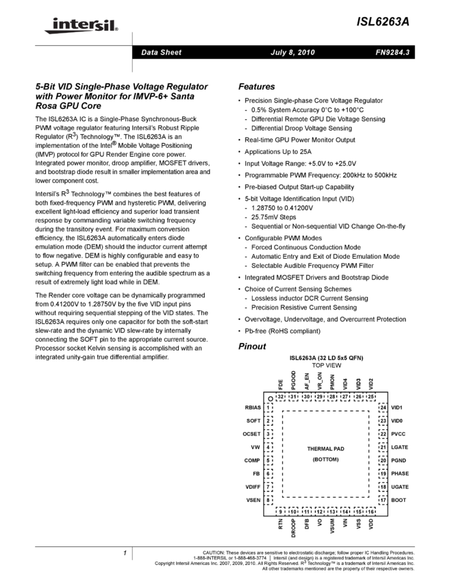 5-Bit VID Single-Phase Voltage Regulator with Power Monitor for IMVP-6+ Santa Rosa GPU Core