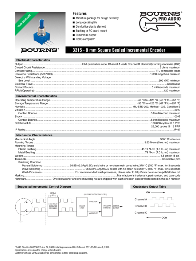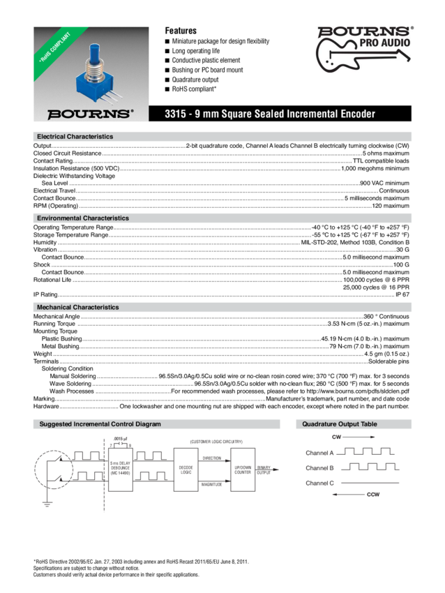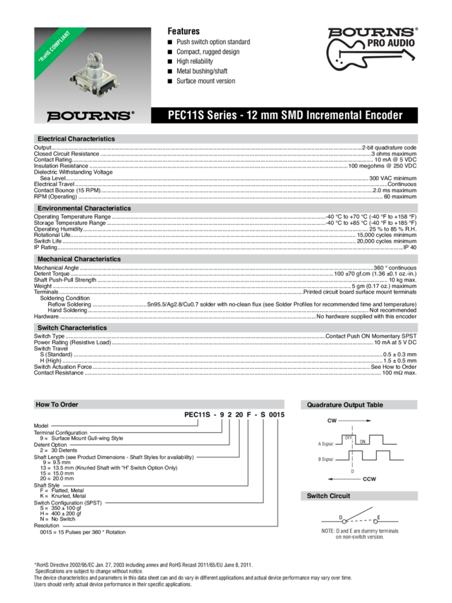 Incremental Rotary Encoder, Optical, with pushbutton, 16,6 R PM, 11 detents, 5V DC min 4,75V, 2 kanały; ośka ścięta 6mm dł.16,8 (gwint 7,28 + to co wystaje 9,53 mm) śr.19mm gł.18,5