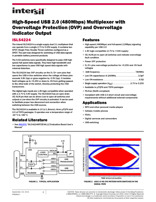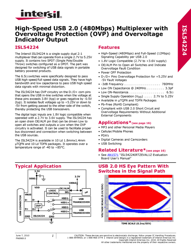 High-Speed USB 2.0 (480Mbps) Multiplexer with Overvoltage Protection (OVP) and Overvoltage Indicator Output
