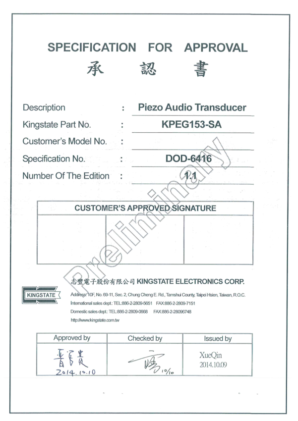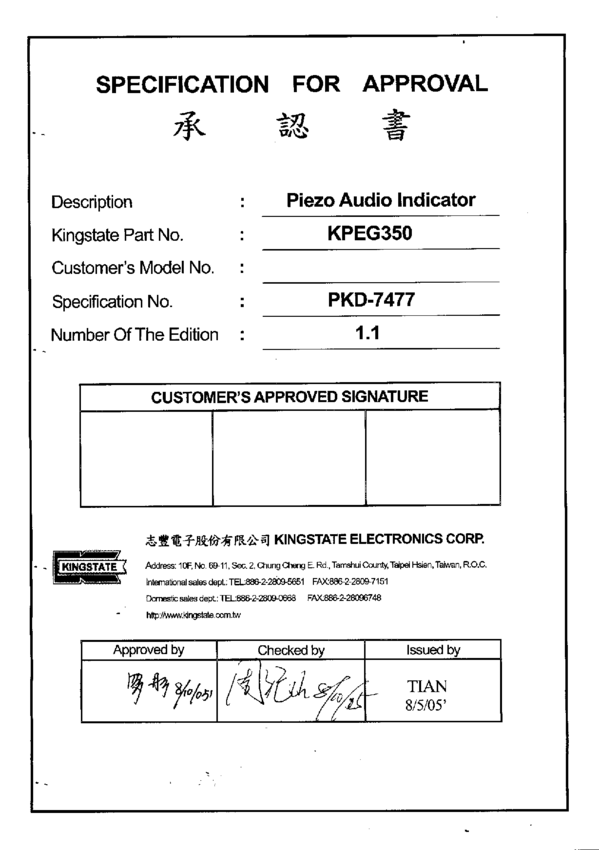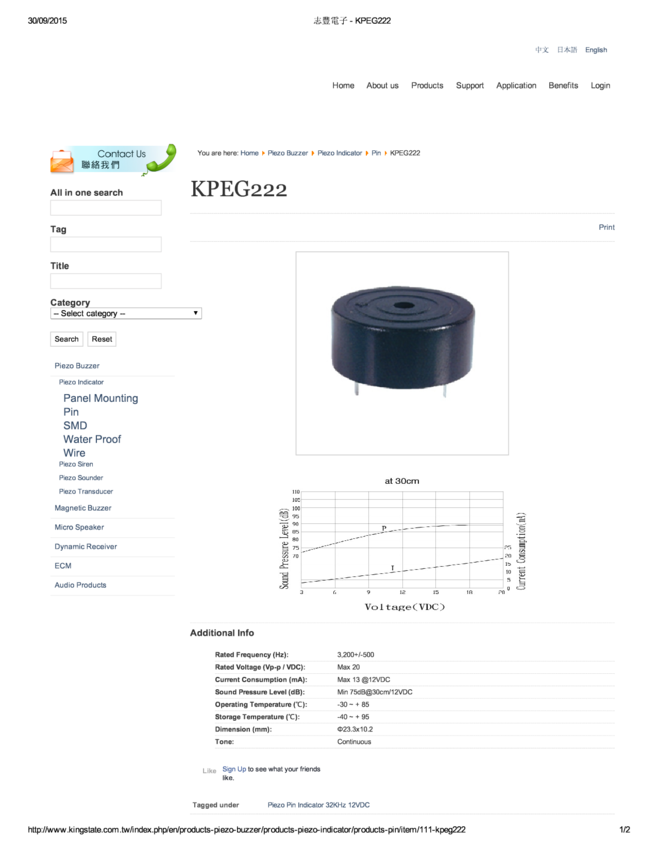 Audio Indicator Transducer Piezo 10Vp-p 7mA Pin Through Hole