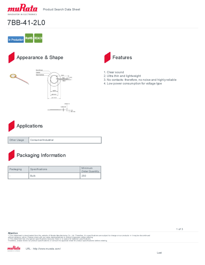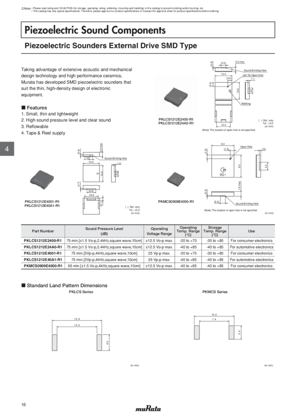 Audio Indicator Sounder Piezo 3Vp-p Solder Pad Surface Mount