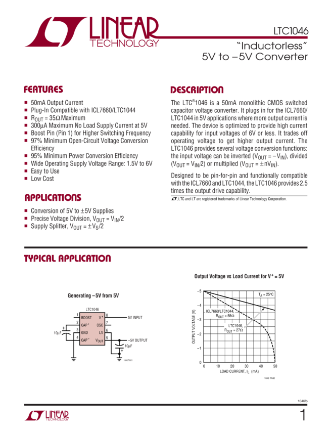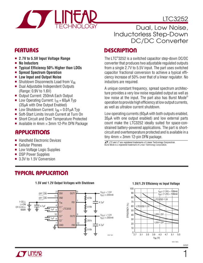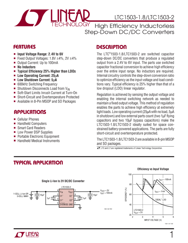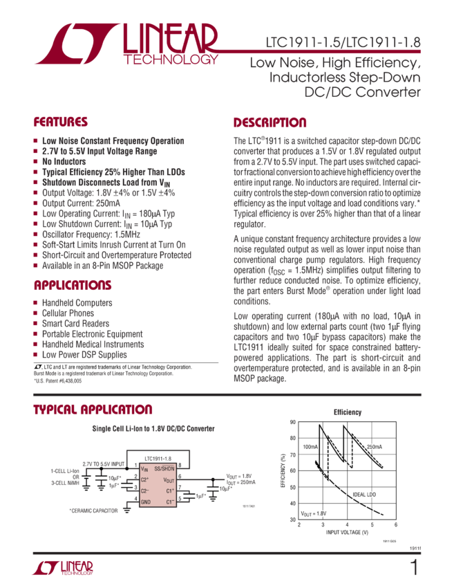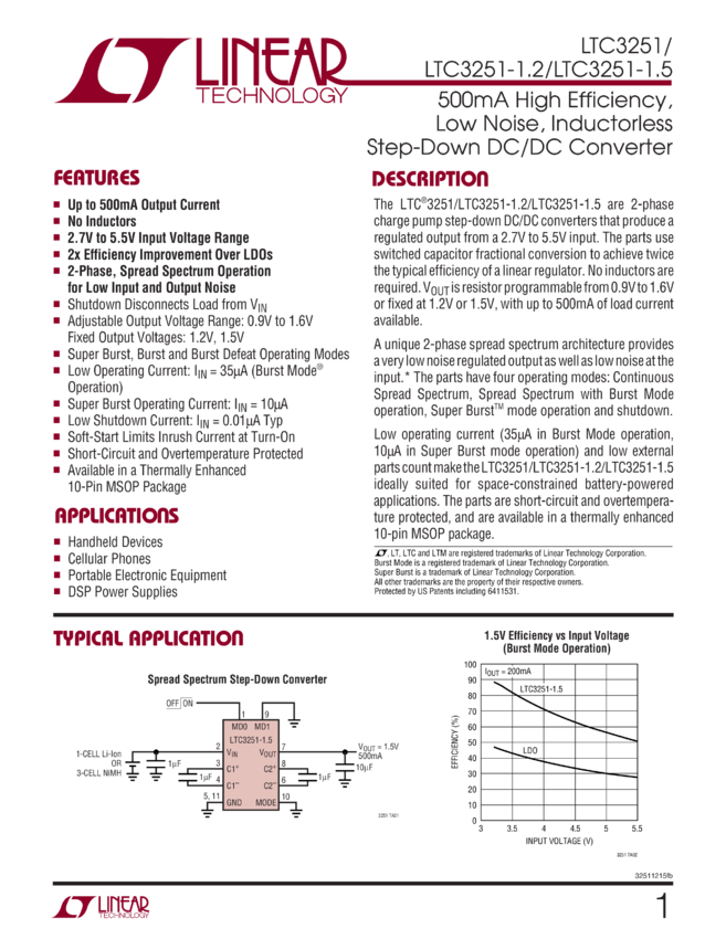 500mA High Efficiency, Low Noise, Inductorless Step-Down DC/DC Converters