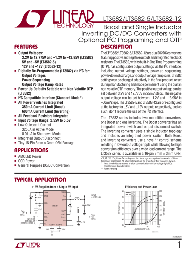 Boost and Single Inductor Inverting DC/DC Converters with Optional I2C Programing and OTP