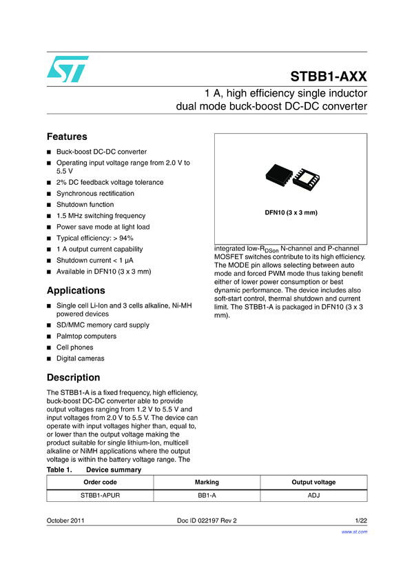 1 A, high efficiency single inductor dual mode buck-boost DC-DC converter