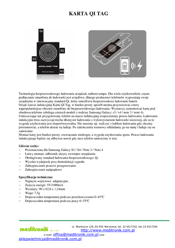 Karta indukcyjna Qi do telefonu Galaxy S4 model RX05 produkt EOL