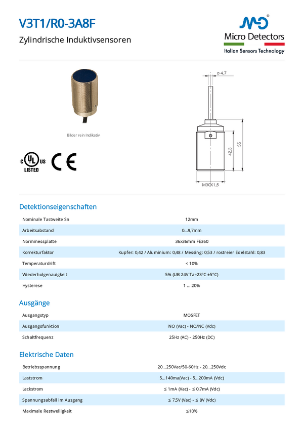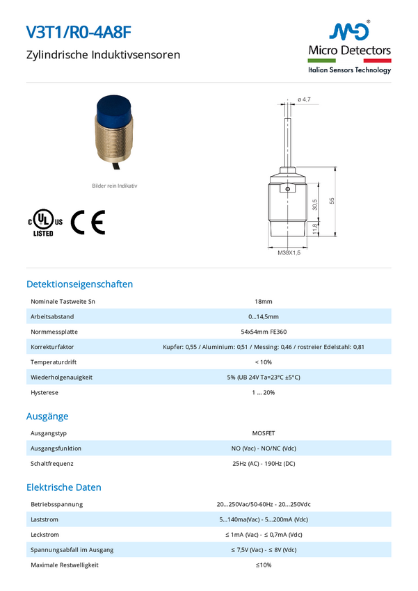 MD Micro Detectors Czujnik indukcyjny V3T1/R0-4A8F