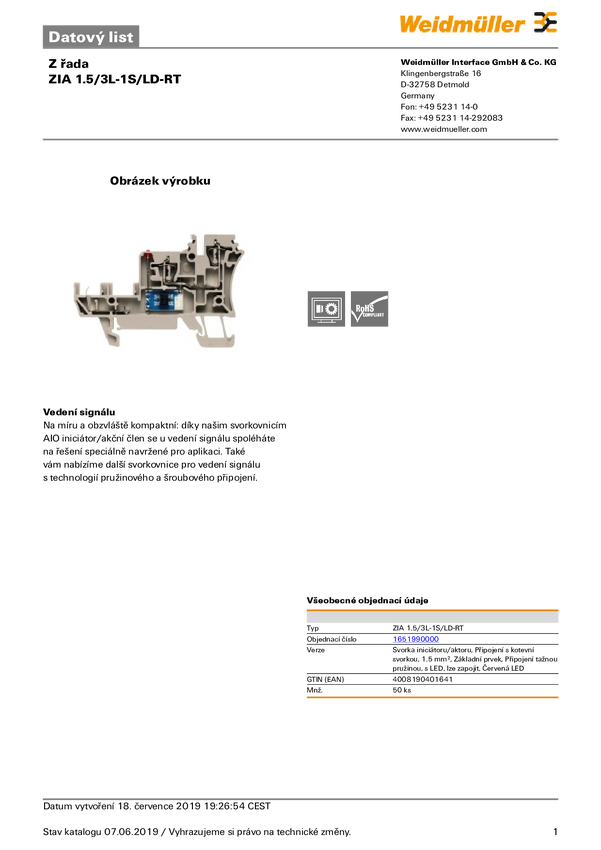 Zacisk siłownika / inicjatora Weidmüller 1651990000 sprężynowe 50 szt.