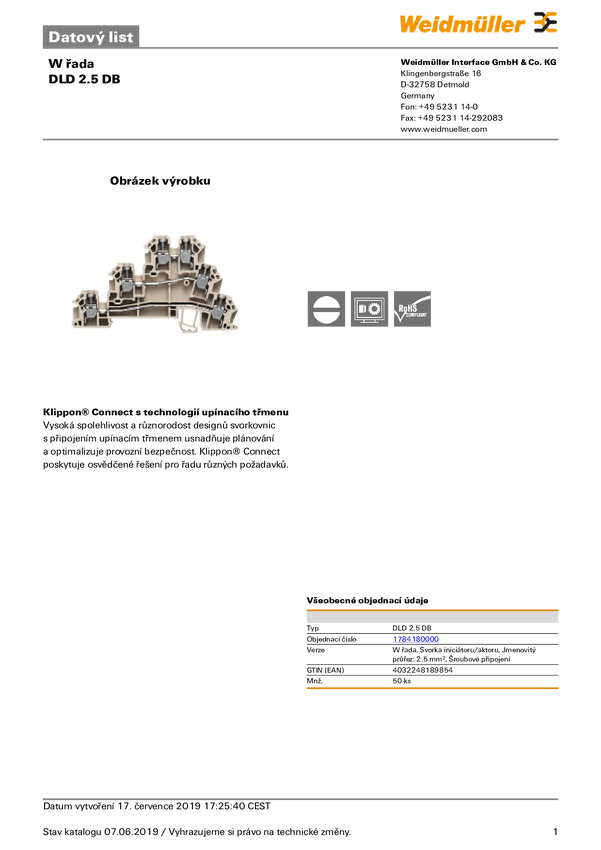 Zacisk siłownika / inicjatora Weidmüller 1784180000 śrubowe 50 szt.