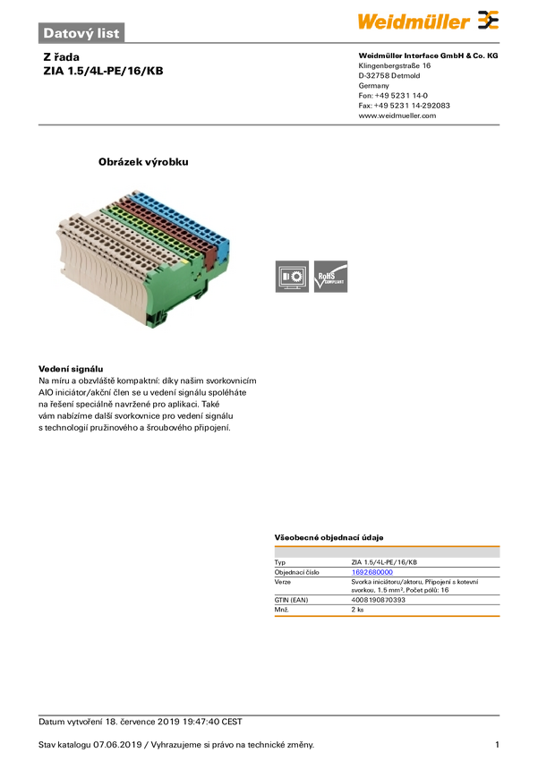 Zacisk siłownika / inicjatora Weidmüller 1692680000 sprężynowe 2 szt.