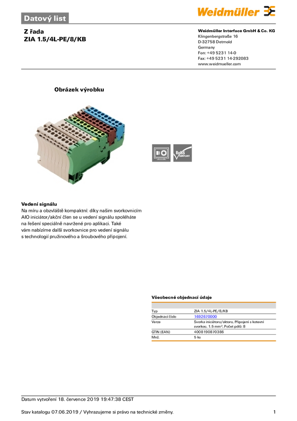 Zacisk siłownika / inicjatora Weidmüller 1692670000 sprężynowe 5 szt.