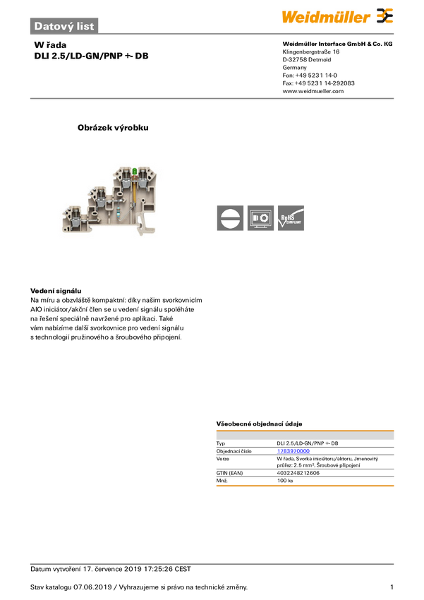 Zacisk siłownika / inicjatora Weidmüller 1783620000 śrubowe 100 szt.