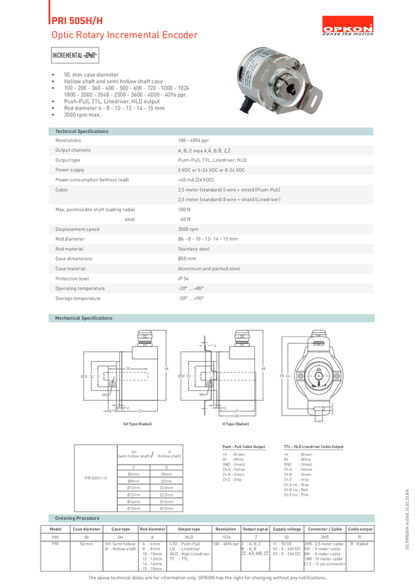 Enkoder obrotowy inkrementalny Opkon PRI-50-SH-6-100-Z-V3-2M5-R Optyczny zaciskany 50 mm