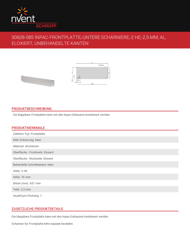 Inpac nVent SCHROFF 30828085 30828085, 1 szt.