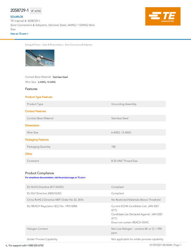TE Connectivity 2058729-1 TE AMP Solar Installation Market, 1 szt.