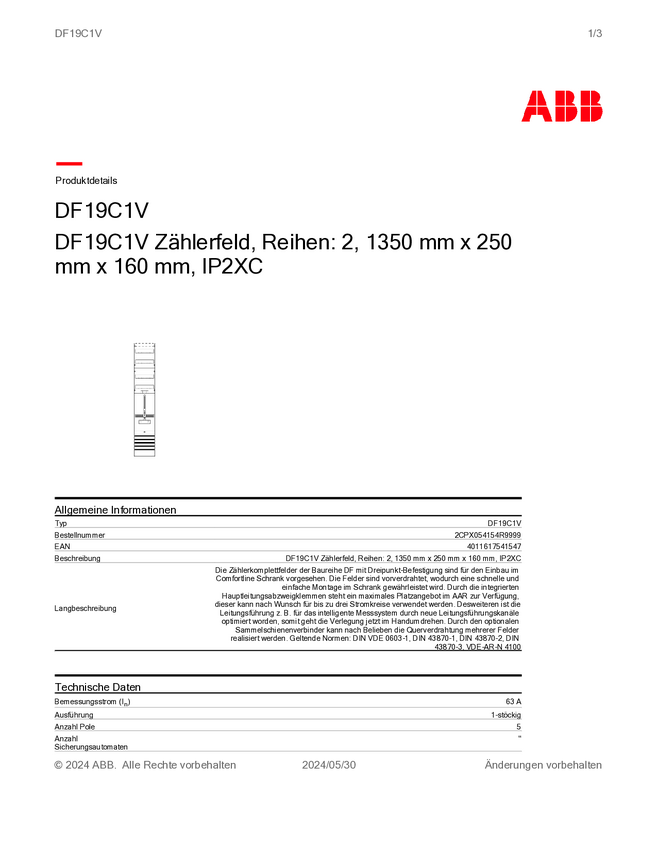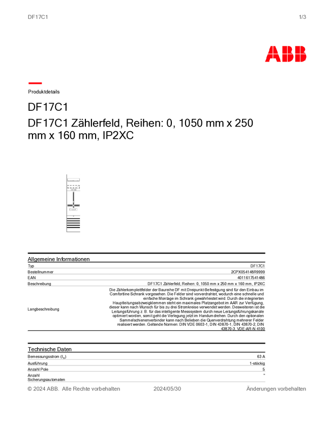 Pole licznika Striebel & John Sonstige Installationstechnik 2CPX054154R9999, 250 mm x 1350 mm , 1 szt.