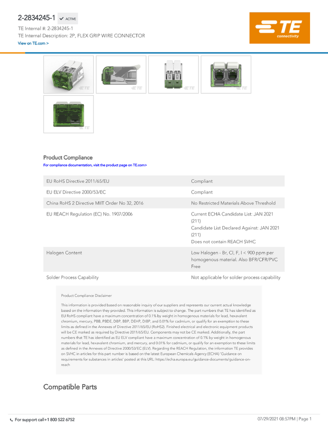 TE Connectivity 2-2834245-1 TE AMP Installation Products, 1 szt.