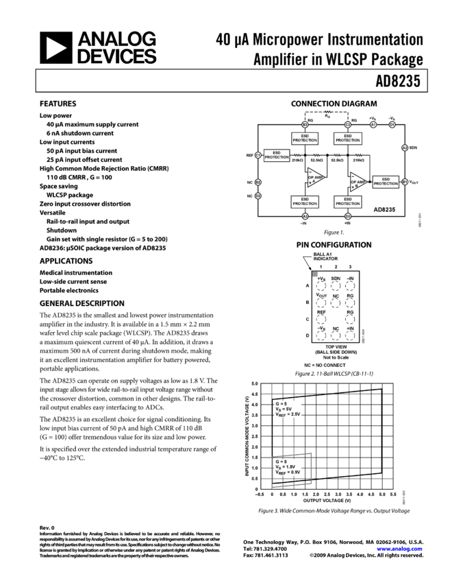 AD8235: 40 A Micropower Instrumentation Amplifier in WLCSP Package