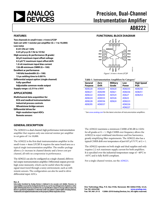 AD8222: Precision, Dual-Channel Instrumentation Amplifier