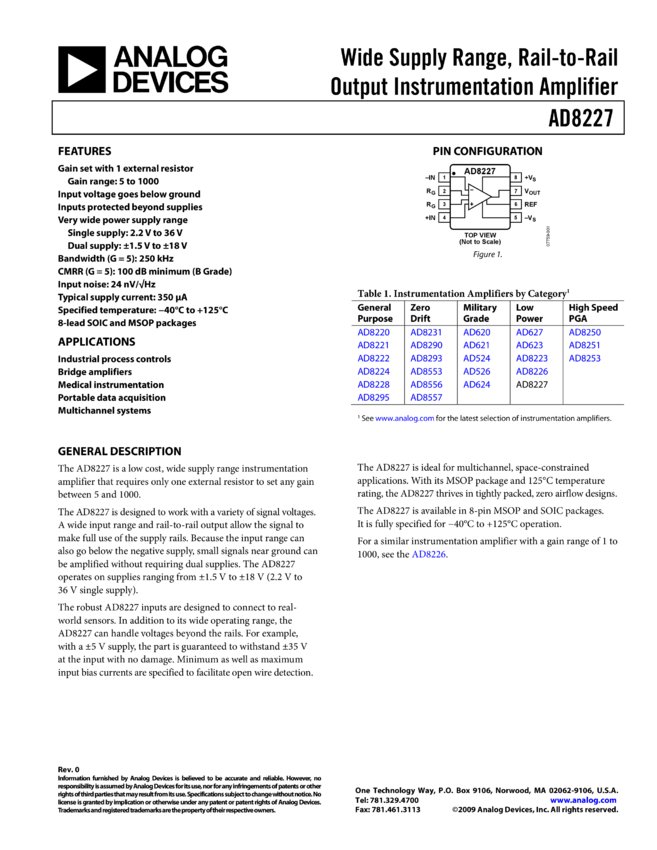 AD8227: Wide Supply Range, Rail-to-Rail Output Instrumentation Amplifier