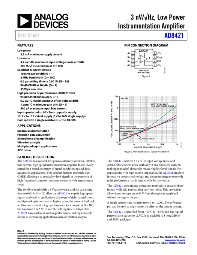 AD8421: 3V /√H, Low Power Instrumentation Amplifier