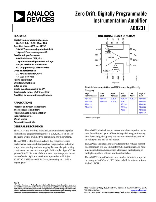 AD8231: Zero Drift, Digitally Programmable Instrumentation Amplifier